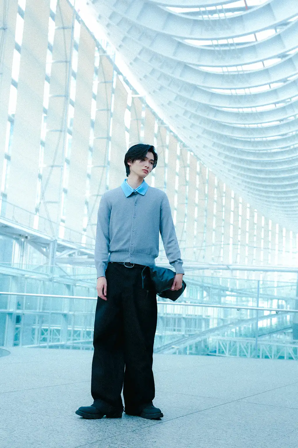 Through movement, the outline is redefined — a quiet dialogue between body and material.